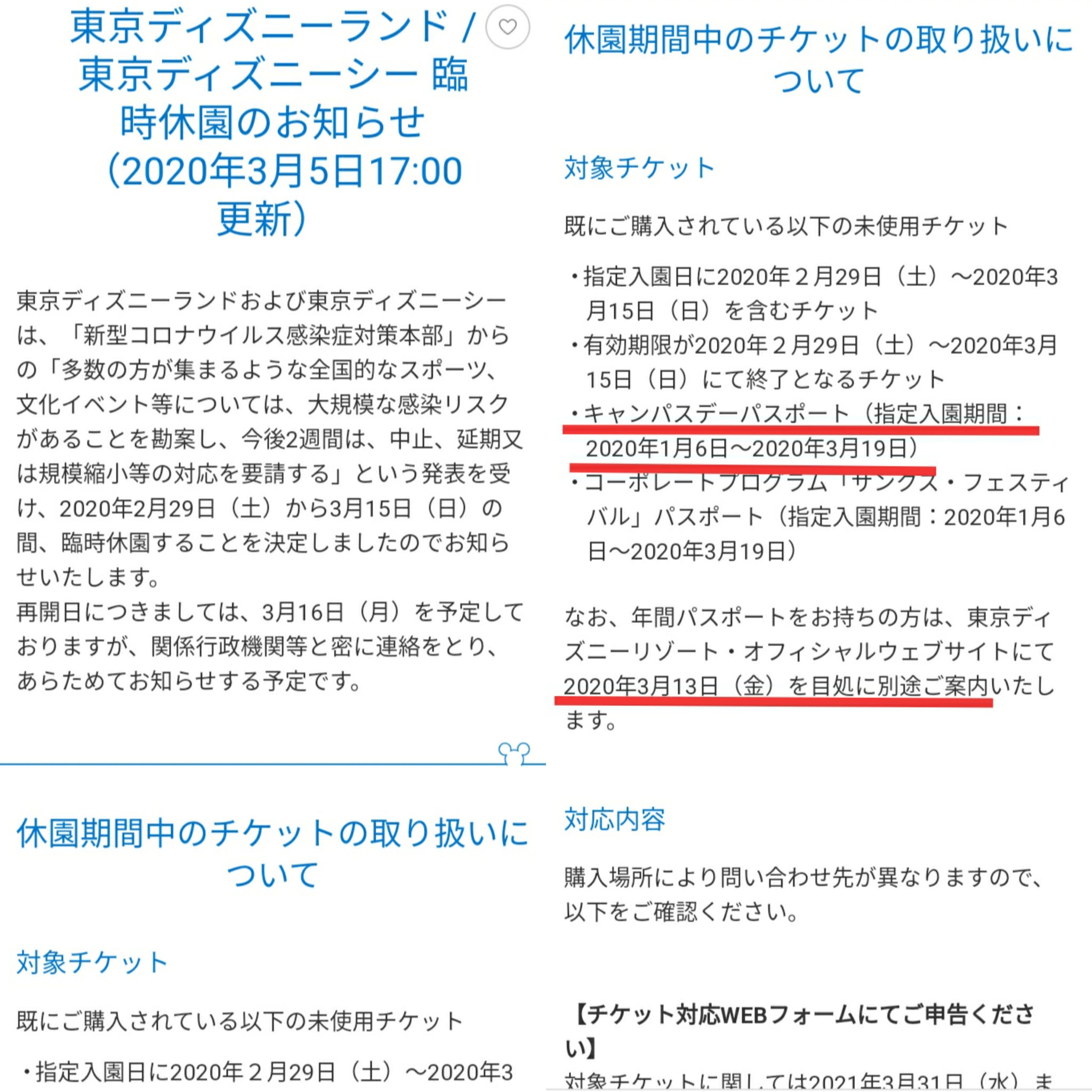 Tdr ディズニー ぷらん Twitterren 臨時休園 公式 本日17時更新 新型コロナウイルス Tdr休園 に伴う パークチケットの交換 払い戻しに関する チケット対応専用webフォーム 開始時期 3月9日 13日の間に延期 受付開始時期について 改めてお知らせ 春キャン 2月28日で