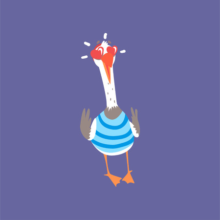 心の形をした目に恋する面白いカモメ 青い背景に隔離された可愛い漫画鳥キャラクター漫画ベクトルイラスト のイラスト素材 ベクタ Image